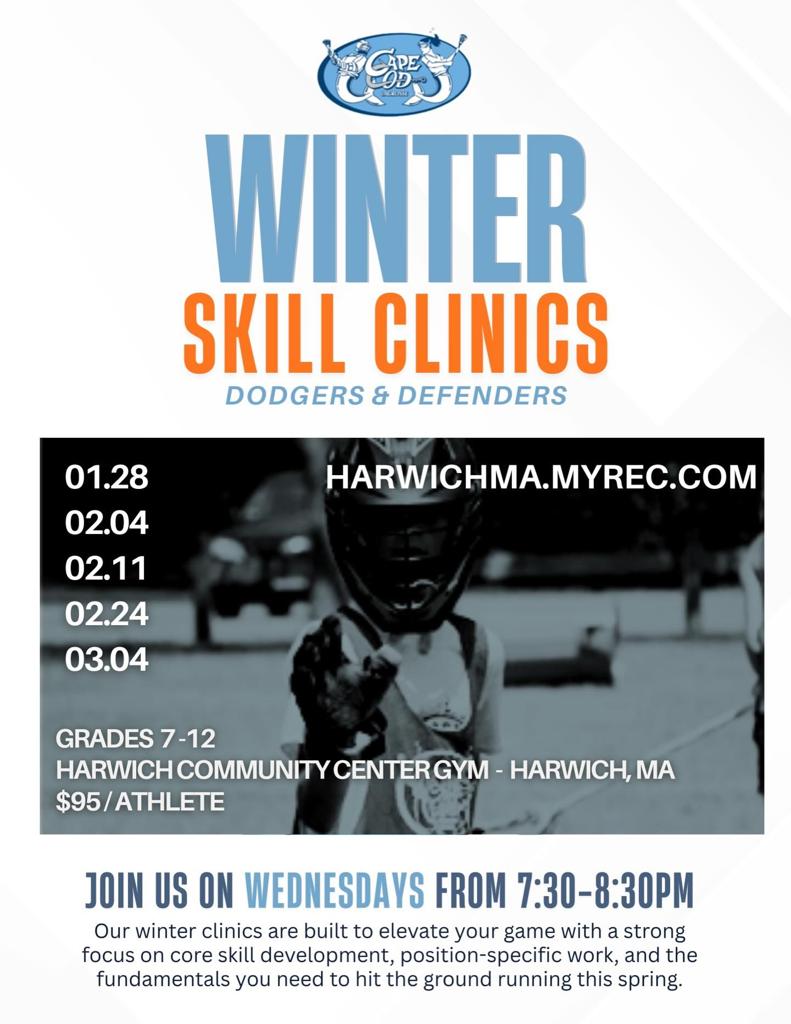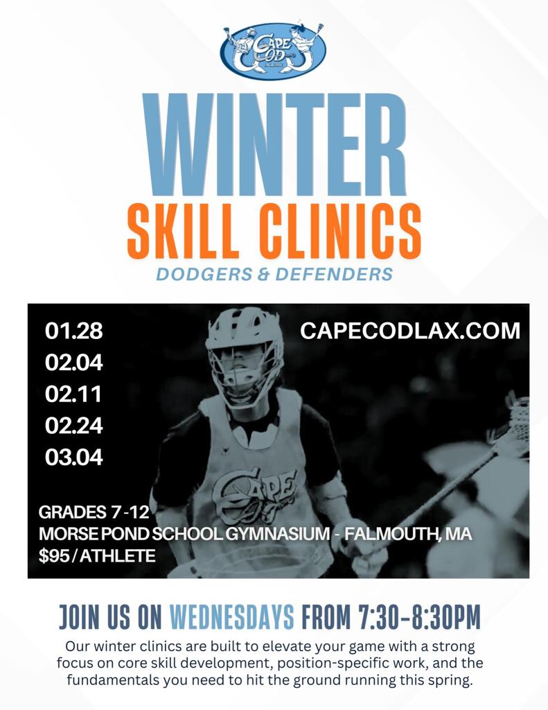 Often there are not many clinics for upper middle/high school students. This year there are two offerings from Cape Cod Lacrosse before we move into the spring season.
